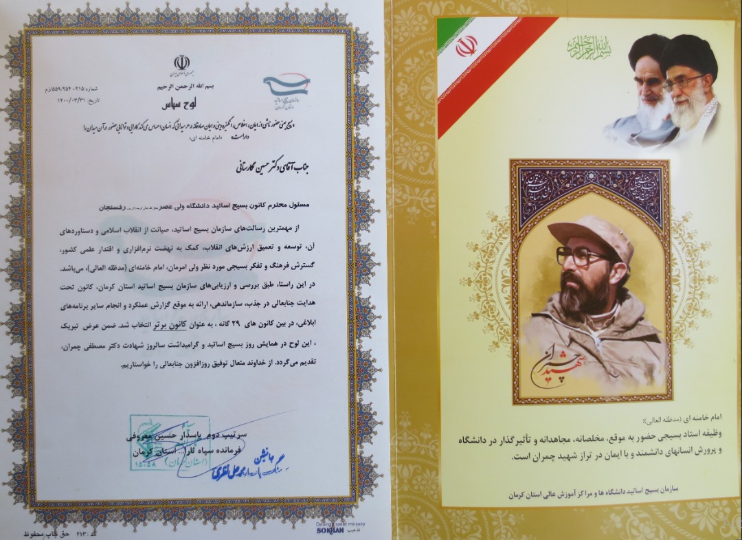 انتخاب کانون بسیج اساتید دانشگاه ولیعصر(عج) رفسنجان به عنوان کانون برتر استان کرمان