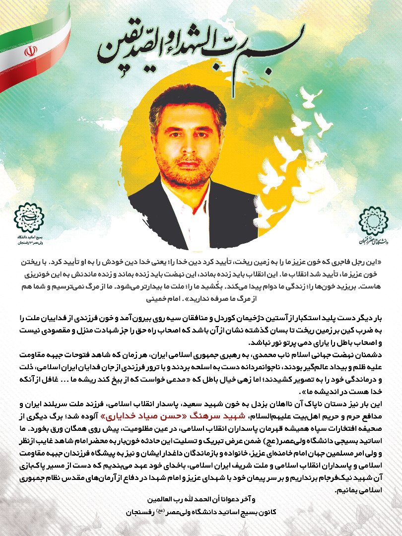پیام کانون بسیج اساتید بمناسبت شهادت شهید سرهنگ «حسن صیاد خدایاری»