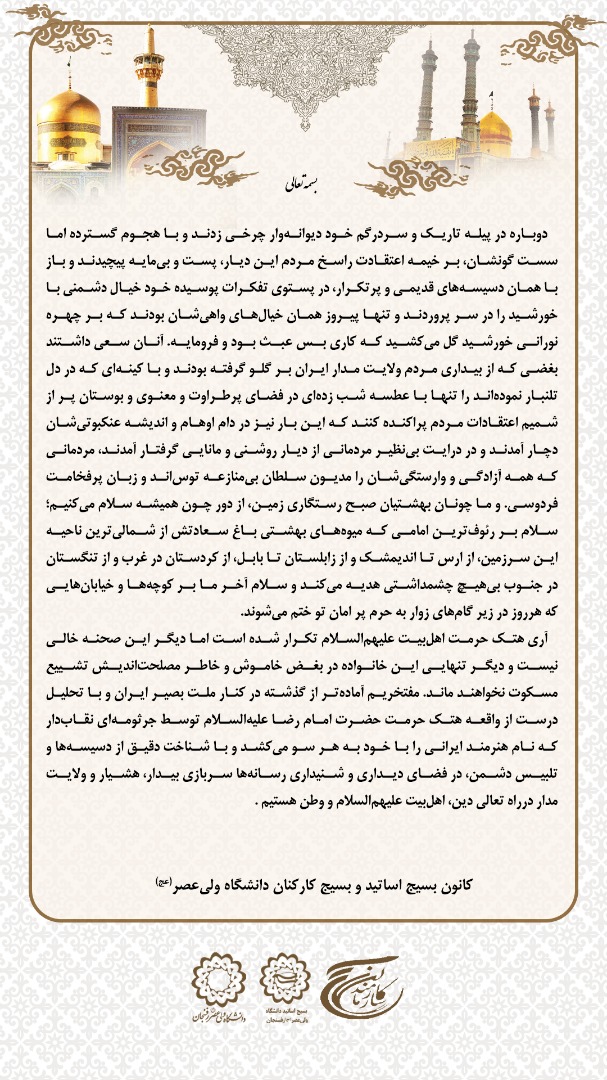بیانیه بسیج اساتید و کارکنان دانشگاه