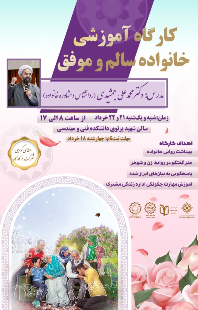 کارگاه آموزشی خانواده سالم و موفق مدرس: دکتر محمدعلی جمشیدی (روانشناس و مشاوره خانواده) موضوعات کارگاه: بهداشت روانی خانواده هنر ...