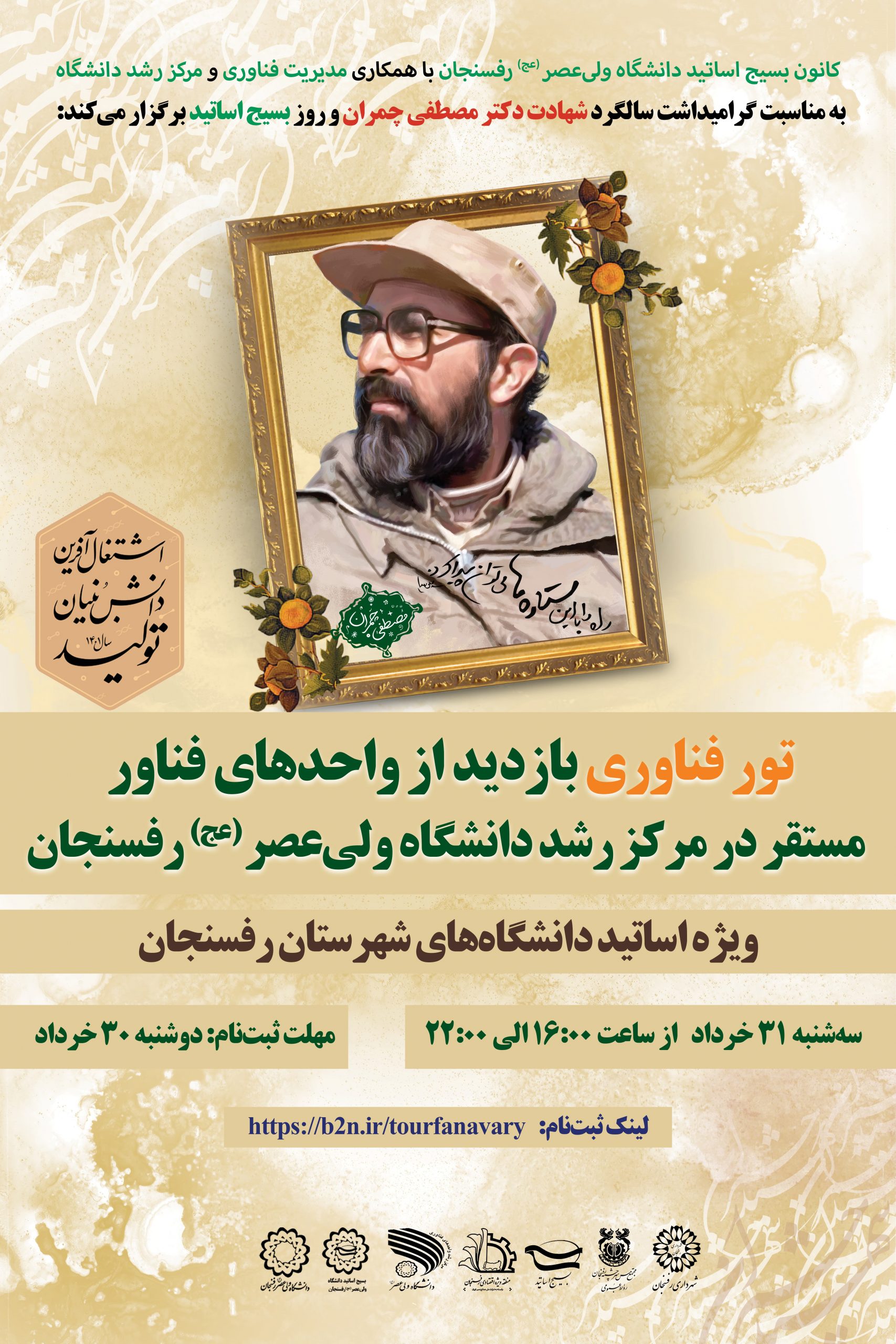 کانون بسیج اساتید دانشگاه ولیعصر (عج) رفسنجان با همکاری مدیریت فناوری و مرکز رشد دانشگاهبه مناسبت گرامیداشت سالگرد شهادت دکتر ...