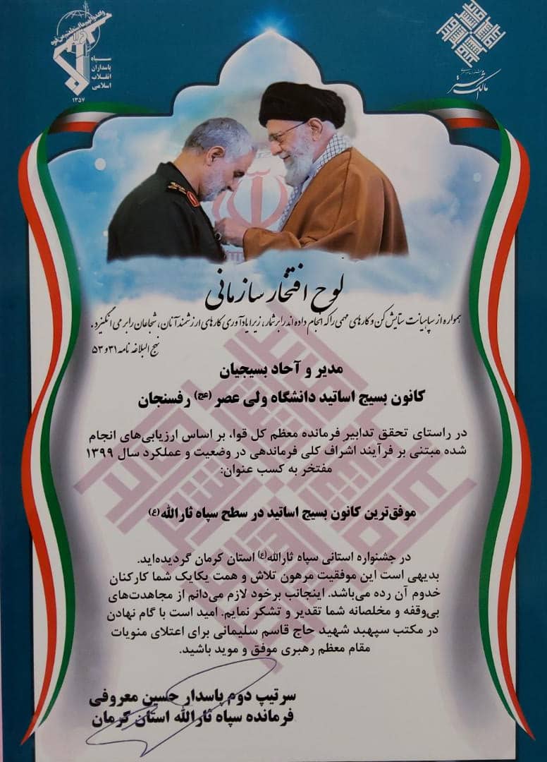 کسب عنوان کانون بسیج اساتید برتر استان توسط بسیج اساتید دانشگاه با سلام خدمت اساتید گرامی. درخشش نام دانشگاه ولیعصر(عج) ...