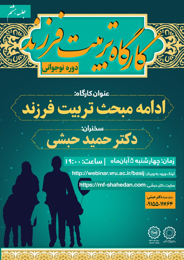کارگاه تربیت فرزند (جلسه هفتم) عنوان کارگاه: ادامه مبحث تربیت فرزند دوره نوجوانی سخنران: دکتر حمید حبشی زمان: چهارشنبه ۲۱ ...