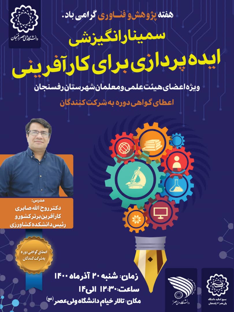 سمینار انگیزشی:ایده پردازی برای کارآفرینی هفته پژوهش و فناوری گرامی باد. سمینار انگیزشی: ایده پردازی برای کارآفرینی (ویژه اعضای هیئت ...