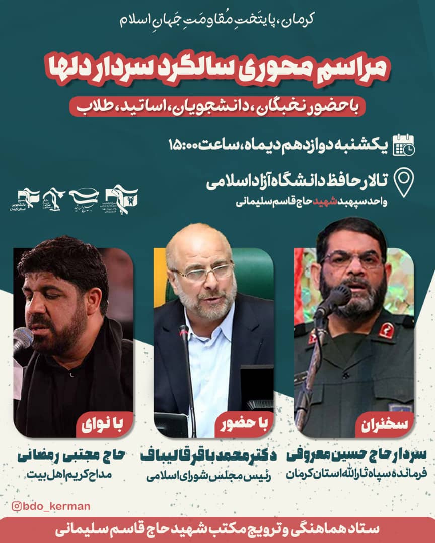 مراسم محوری سالگرد سردار دلها با حضور نخبگان، دانشجویان، اساتید و طلاب کرمان، پایتخت مقاومت جهان اسلام مراسم محوری سالگرد ...