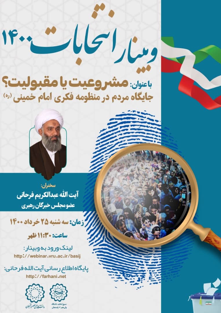 وبینار انتخابات ۱۴۰۰ با عنوان: مشروعیت یا مقبولیت؟ جایگاه مردم در منظومه فکری امام خمینی (ره) سخنران: آیت الله عبدالکریم ...