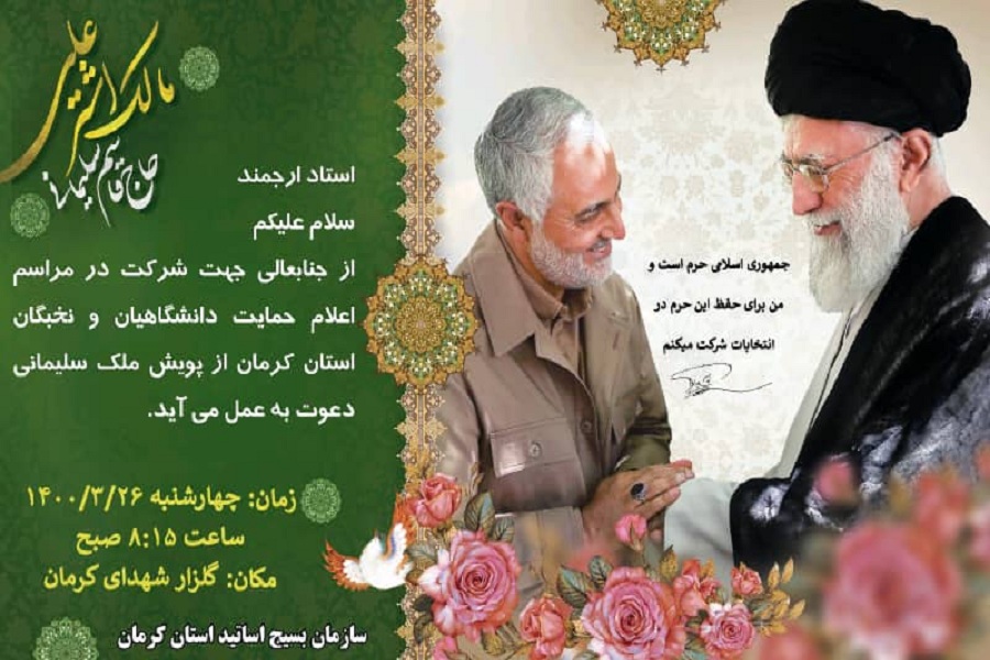 مراسم اعلام حمایت دانشگاهیان و نخبگان استان کرمان جهت حضور پرشور و آگاهانه در انتخابات(پویش ملک سلیمانی)