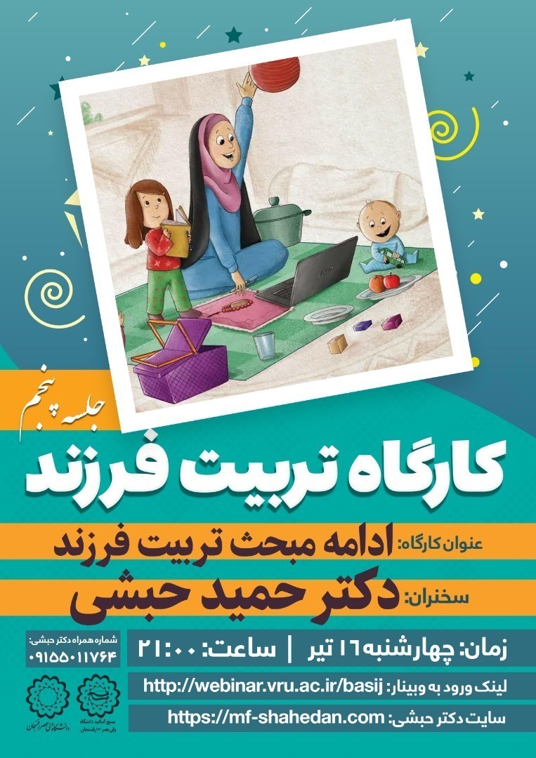 کارگاه تربیت فرزند ( جلسه پنجم) عنوان کارگاه: ادامه مبحث تربیت فرزند سخنران: دکتر حمید حبشی زمان: چهارشنبه ۱۶ تیر ...