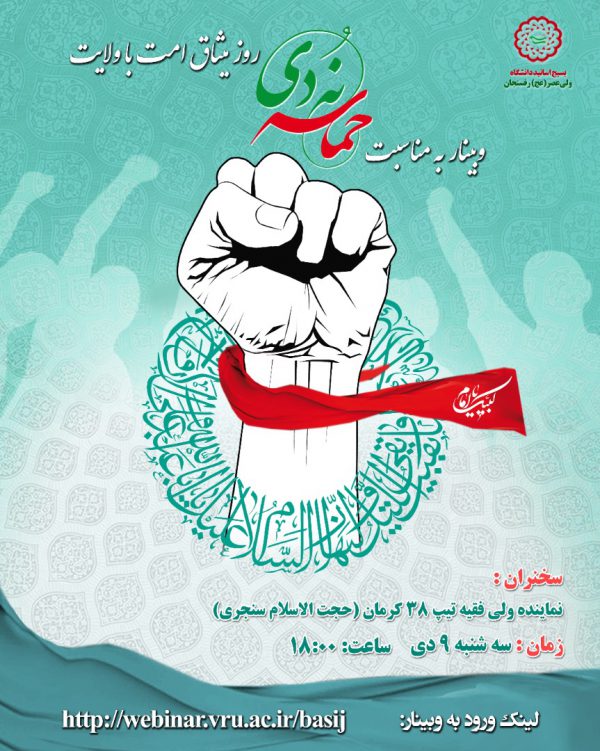 وبینار به مناسبت حماسه ۹ دی (روز میثاق امت با ولایت) سخنران: نماینده ولی فقیه تیپ ۳۸ کرمان(حجت الاسلام سنجری) ...