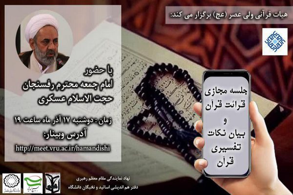 جلسه مجازی قرائت و بیان نکات تفسیری قرآن توسط امام جمعه محترم رفسنجان