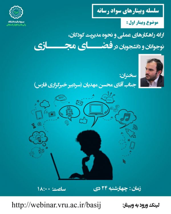سلسله وبینارهای سواد رسانه موضوع وبینار اول: ارائه راهکارهای عملی و نحوه مدیریت کودکان، نوجوانان و دانشجویان در فضای مجازی ...